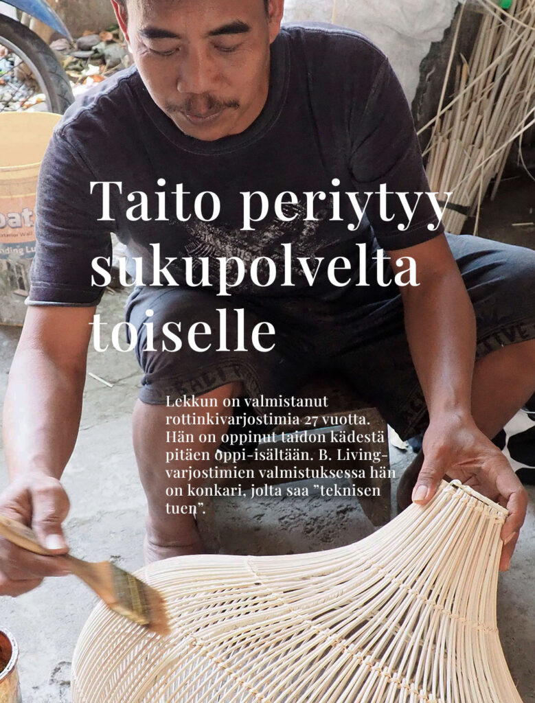 Reissut ovat motivaattori sekä heille että meille. Näin voimme varmistaa uusien tuotteidemme alkuperän, käydä läpi laatukriteereitä ja kehittää yhteistyössä uutta. Tänä vuonna yksi työmatkamme pääkohteista oli huonekalumessut Jakartassa.