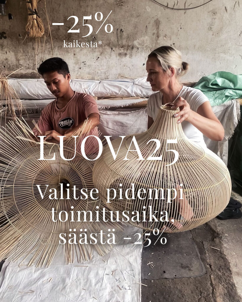 Maaliskuussa keskitymme mallistomme kehittämiseen, ja verkkokauppamme varasto pyörii vajaalla miehityksellä. Tänä aikana voit valita tilauksellesi pidemmän toimitusajan ja säästää -25% ostoksestasi. Tilauksesi toimitetaan silloin 24.3. alkaen.