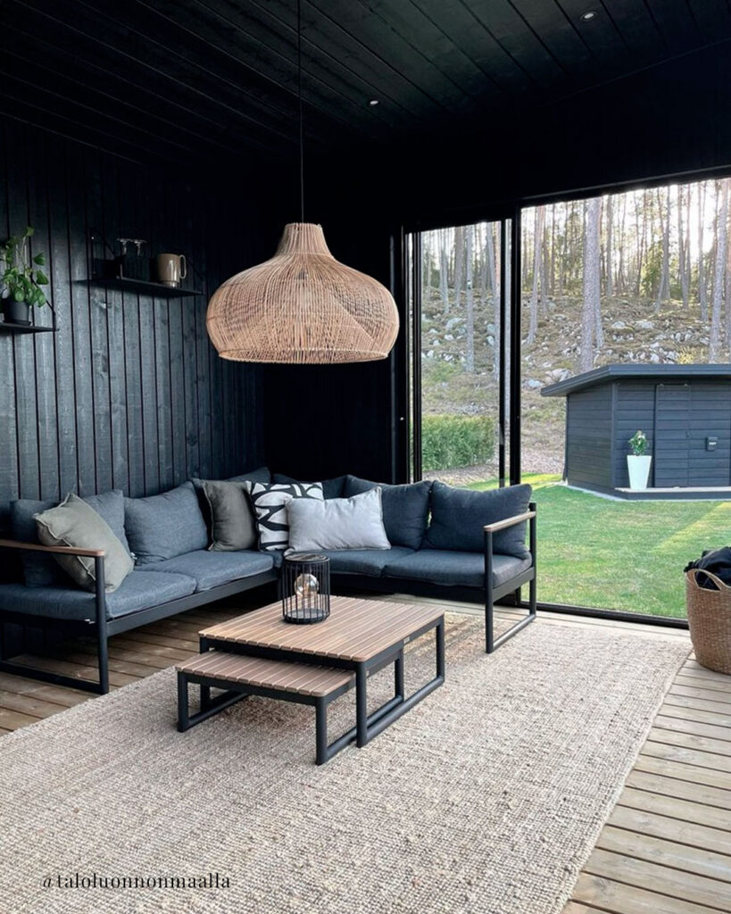 Sopii, kun sijoitat varjostimen katoksen alle ja siirrät sen kuiviin sisätiloihin loppukesän kosteuden saapuessa. Lasitetulla terassilla varjostin voi säilyä hyvänä jopa ympäri vuoden. Taivasalla varjostin kestää hetkittäiset sateet – pidä ripustus kuitenkin väliaikaisena, esim. juhlien ajan.