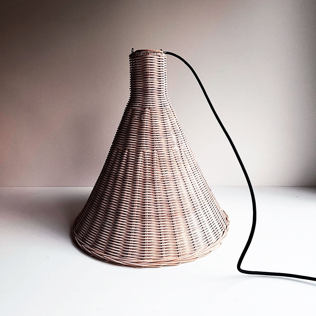 Mallikappale Nordic-mallistomme kartionmallisesta Bunda-varjostimesta. on iloinen ilmestys tilaan kuin tilaan. Rottinki on punottu tiiviisti metallisen rungon ympärille. Varjostin on kevyesti valkaistu.