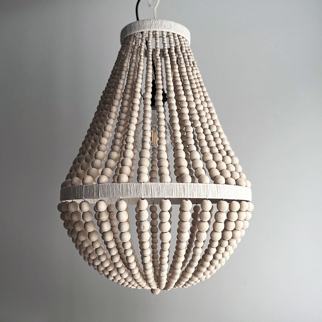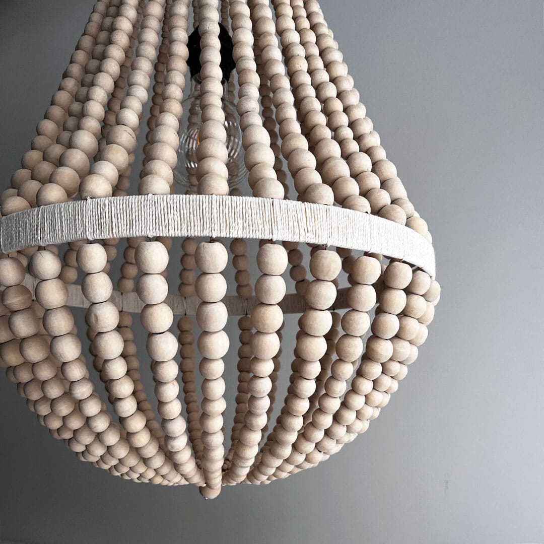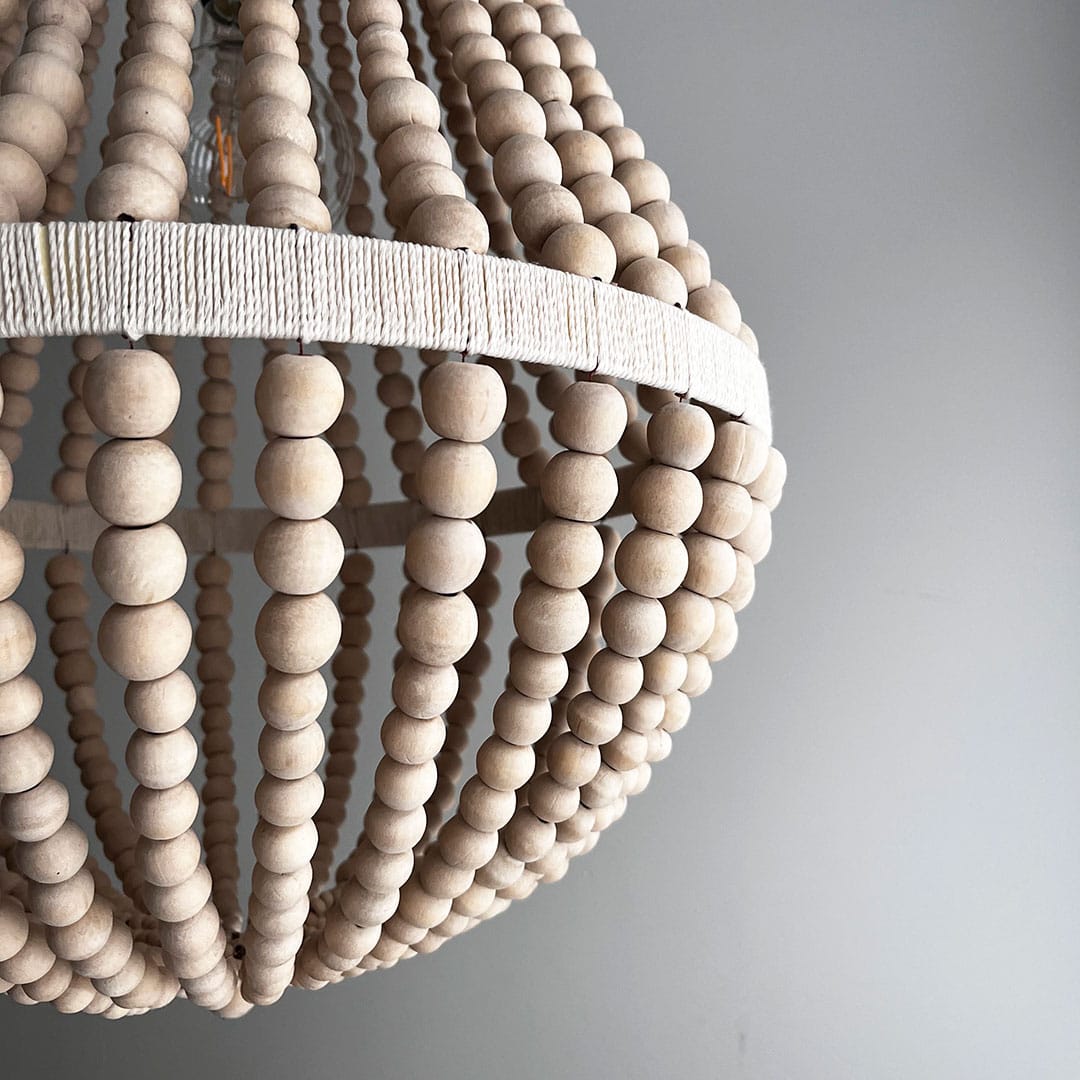 Valo siivilöityy tässä valaisimessa kauniisti puuhelmien lomasta, luoden tilaan lämpimän ja rauhallisen tunnelman. Se tuo ripauksen luonnon harmoniaa ruokapöydän ylle, makuuhuoneeseen tai olohuoneen katseenvangitsijana.
