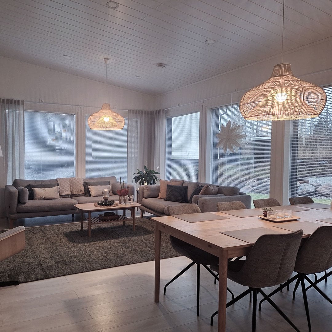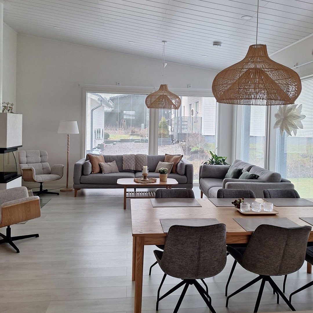 Jos harkitset kokojen välillä, testaa rohkeasti L:ää. Se toimii hyvin esim. keskivertokokoisen ruokapöydän päällä (pöydän mitat alk. 180×90 cm) ja normaaleissakin huonekorkeuksissa. Jos kaipaat vielä enemmän, uutuuskoko XL täyttää kaikki toiveet. Suuri XL keräsi katseet Habitare-messuilla, ja jäi monen toivelistalle ensi erän loputtua varastosta. Varjostin laskeutuu kauniisti tilasi ylle, ja luo tunnelman johon monen muun on vaikea yltää.