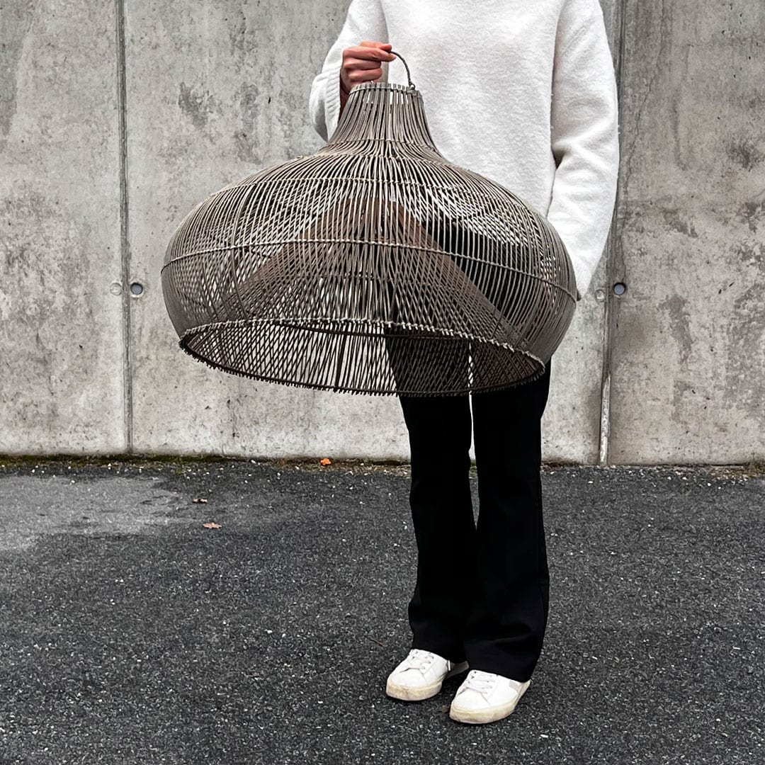 Mallistomme näyttävä suosikkivarjostin, joka on punottu viimeistellysti kahdessa kerroksessa. Varjostin siivilöi valoa kauniisti joka suuntaan.