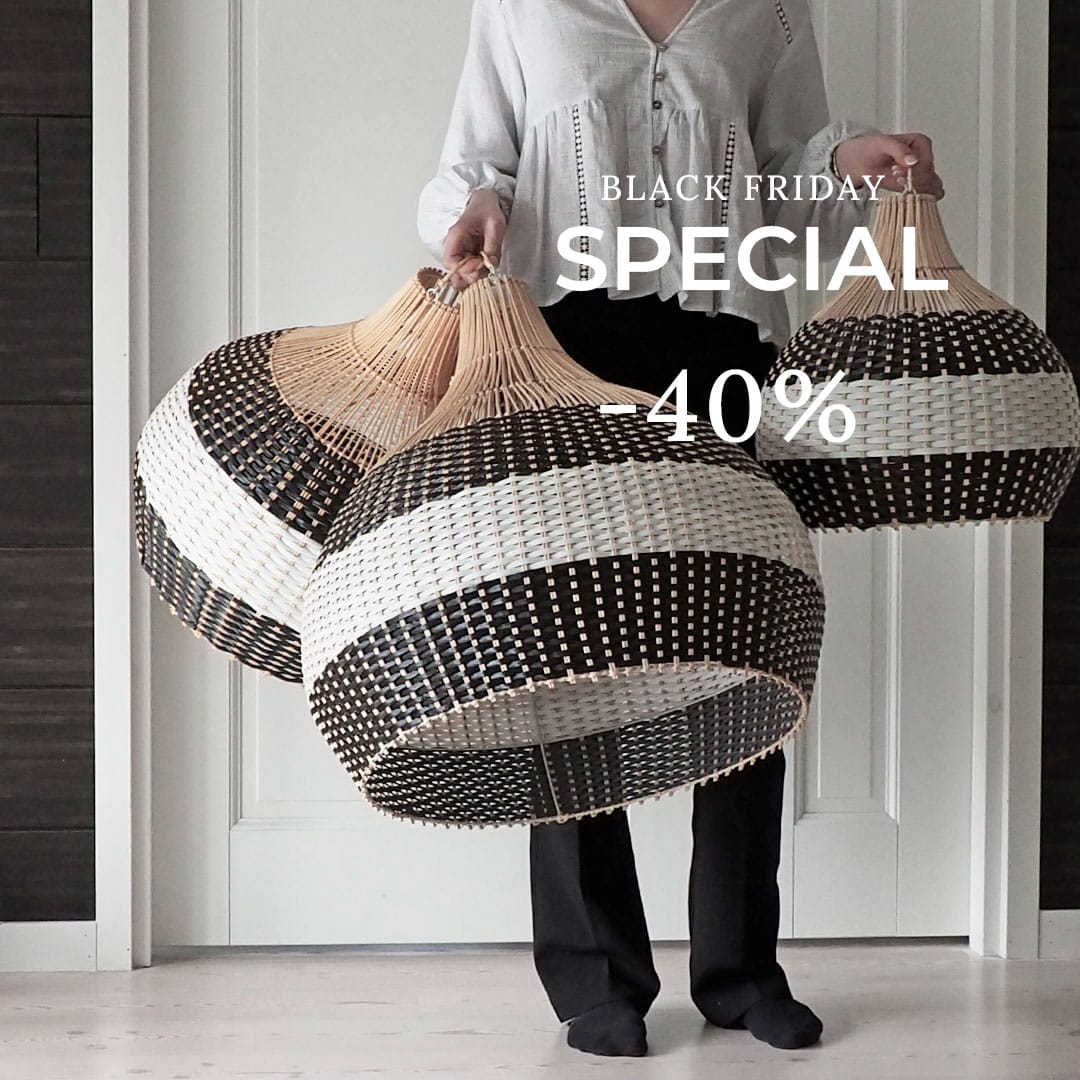 Marumara-varjostin on raikas ilmestys skandinaaviseen kotiin. Punonnassa yhdistyvät perinteinen rottinki ja mustat ja valkoiset vaakaraidat, jotka tuovat varjostimeen raikkaan kontrastin. Käsin punottu ajaton sipulimalli sopii täydellisesti niin minimalistiseen kuin boheeminpaankin sisustukseen valaisten tilasi tyylillä!