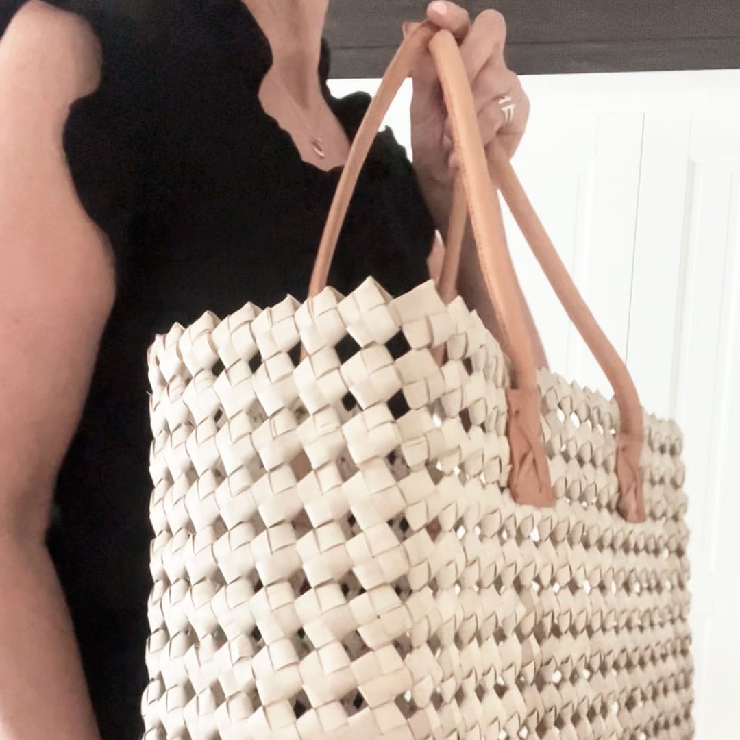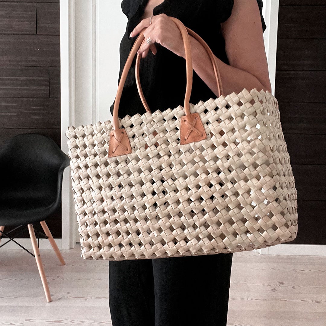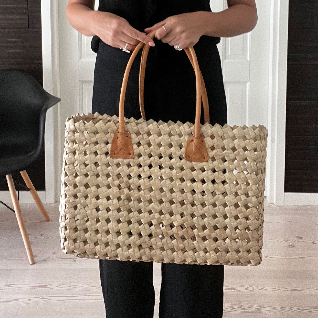 Upea yksittäiskappale joka toimii niin kesän mökkireissujen luottokassina kuin kodin tyylikkäänä säilytyskorina.