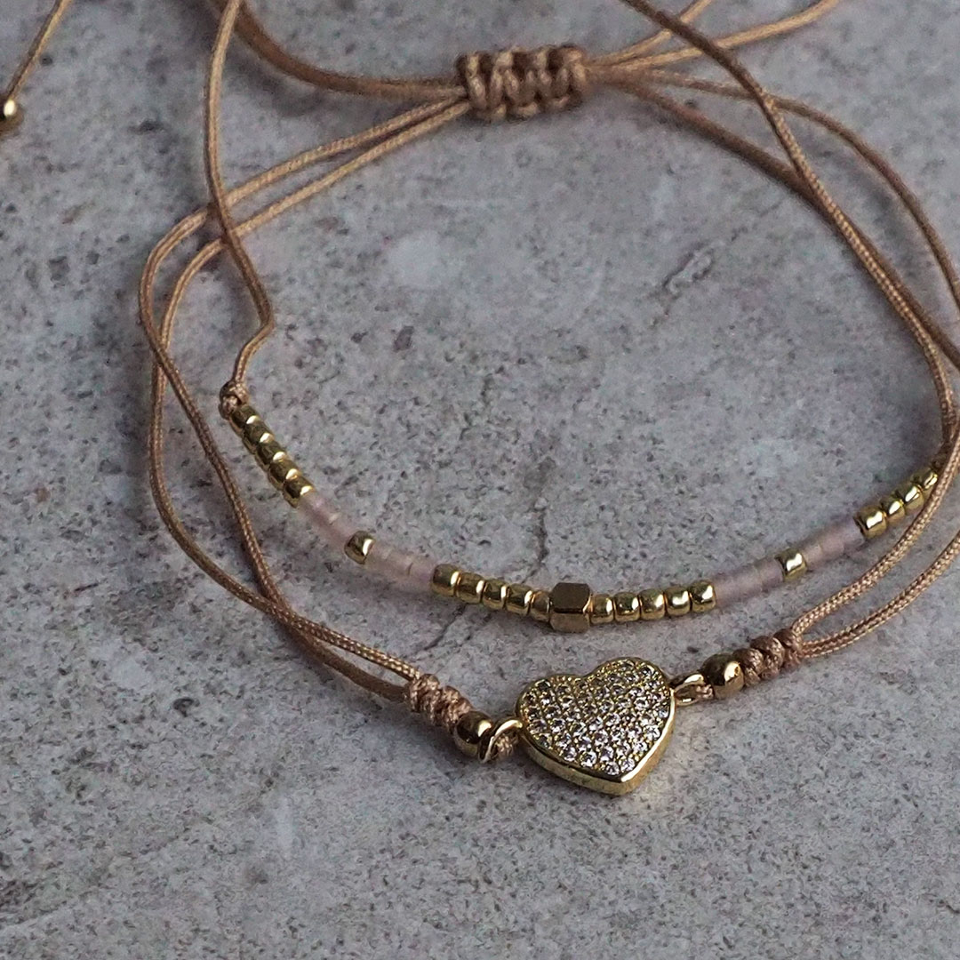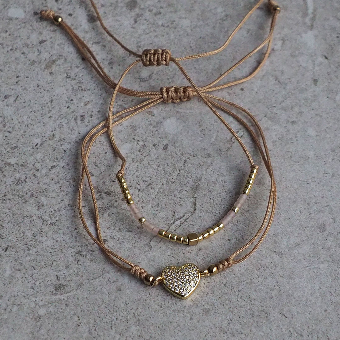 Rannekorusetti HEART (2 kpl), beige/kulta/vaal.pun.
